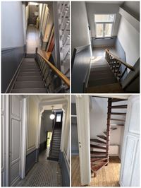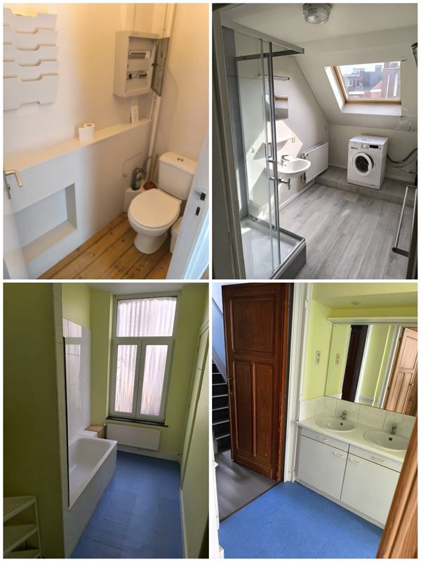Maison libre à l'acte ! Terrain = 1a 15 ca (115m²). Superficie brute, cf. PEB = 225m². Composition (= situation de fait !) : sous-sol = caves, compteurs, buanderie ; rez-de-chaussée = hall d'entrée, 3 pièces à l'enfilade, WC, cuisine américaine (+ chaudière gaz), cour/jardinet ; entre-sol = WC ; 1er étage = hall/palier, SDB, 2 chambres ; 2e étage = hall/palier, séjour, cuisine américaine, balcon, débarras ; 3e étage sous toiture = hall, WC, 2 chambres, salle de douche, débarras/chaudière, escalier en colimaçon vers une chambre située dans la pointe du toit. Visite sur rendez-vous : inscription par Email.